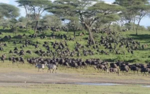 The focus of most safaris in northern Tanzania, Serengeti National Park is renowned as the arena for the world’s greatest mammal migration. Even away from this iconic wildlife spectacle, the Serengeti’s sheer density of animals makes for incredible wildlife viewing throughout the year. The southern plains near Seronera are the most popular, but it’s also worth exploring the Western Corridor and Mara River regions. We’ll start the day with a picturesque drive towards the Serengeti. During this journey, we’ll traverse the misty rainforests of the Ngorongoro Conservation Area, offering a chance to spot Cape buffaloes, baboons, and possibly elephants and leopards hiding in the dense undergrowth. Continuing our journey, we’ll arrive at the Ndutu area in the southern part of Serengeti National Park. Ndutu serves as the traditional calving ground for wildebeest, and during the calving season, it hosts over 1.7 million of these animals as they prepare for their northward migration to Kenya. While on your game drive, you’ll have the incredible opportunity to witness wildebeest and zebra calves taking their first steps, all while predators hunt for the weakest members of the herd. As you explore the stunning Serengeti landscape during your afternoon game drive, you’ll be immersed in the park’s natural beauty. For dinner and overnight stay, you’ll be accommodated in the heart of Serengeti National Park.